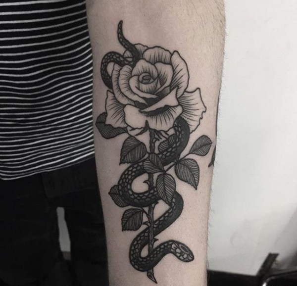 男人大臂黑白彼岸花骷髅_黑白纹身图案大全_纹身图吧