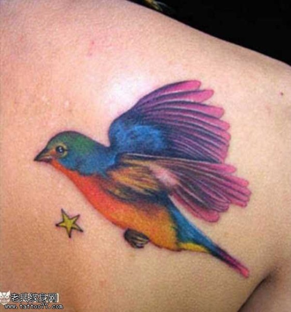 背部彩鸟纹身图案