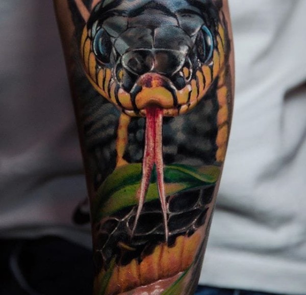 让人毛骨悚然的现实风格蛇纹身图案