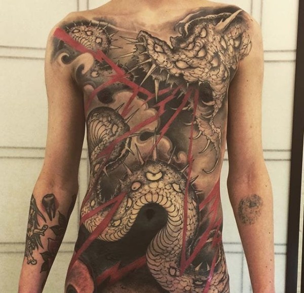 日式手彫刺青作品—半甲龙很感谢客户认可手彫刺青,手彫是日本纹身的手工雕刻技术,时间可以追溯到日本17世纪的江户时代。19世纪,手彫技术被日本黑帮挪用,被用作入会仪式,象征着从此就是江湖中人。在日式传统