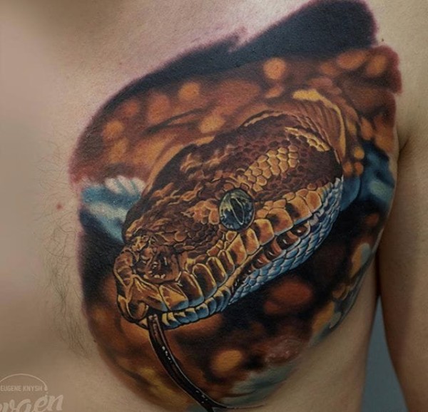 让人毛骨悚然的现实风格蛇纹身图案