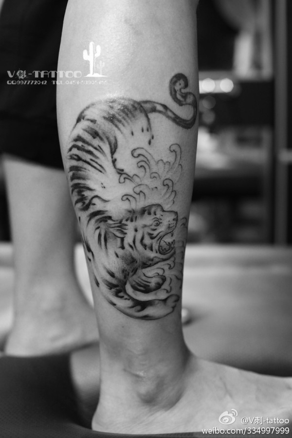 老虎图腾纹身 多款黑灰纹身点刺技巧老虎纹身图案