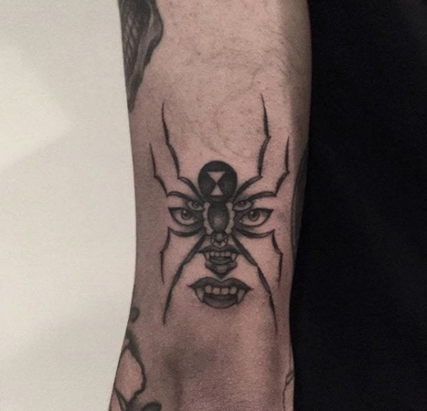 让人感觉神秘的黑色风格动物和人物肖像纹身图案