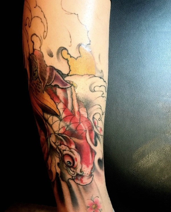 新时代手臂彩色红鲤鱼纹身图案