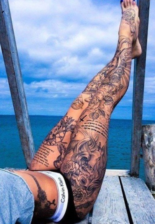 传统花腿纹身--18张传统风格的大花腿纹身图案作品