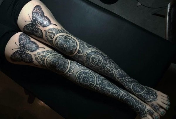 15款漂亮的花腿纹身图案