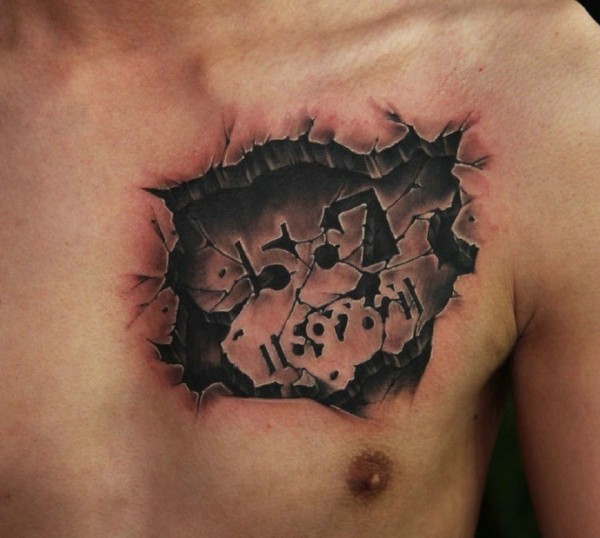 纹身图案胸部男 简洁大方的男生胸部纹身图案