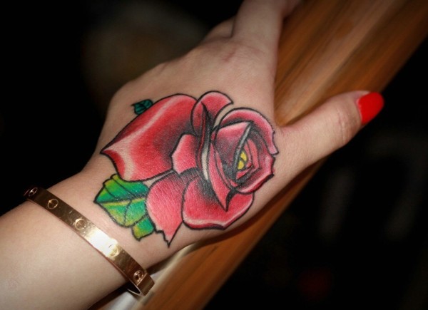 性感抢眼的手背大红玫瑰纹身图案