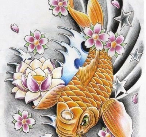 多款漂亮的彩色锦鲤鱼纹身图片手稿
