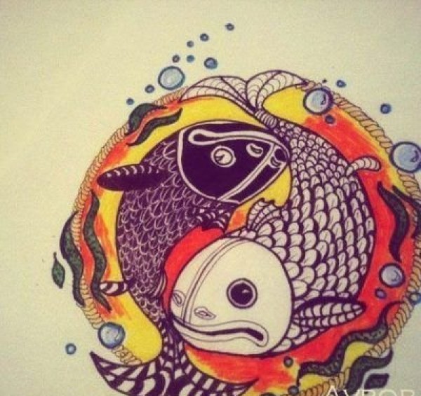 双鱼座纹身手稿_45张十二星座之双鱼手稿纹身图案