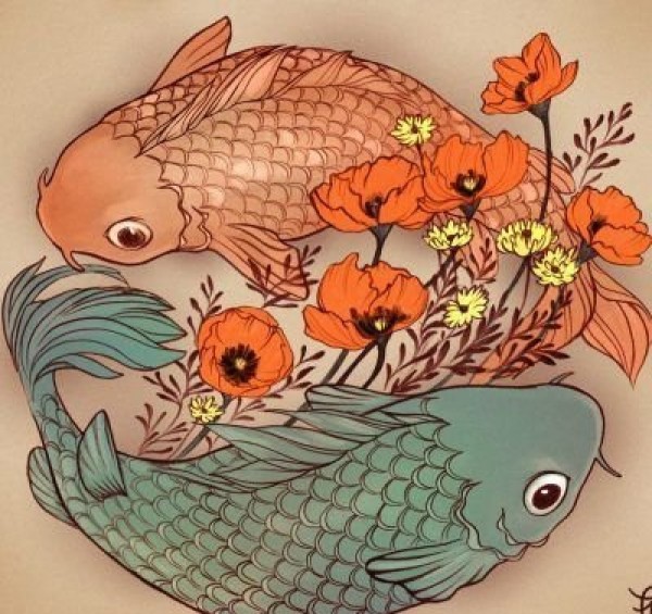 双鱼座纹身手稿_45张十二星座之双鱼手稿纹身图案