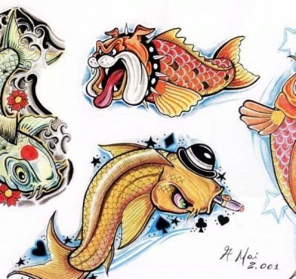 多款漂亮的彩色锦鲤鱼纹身图片手稿