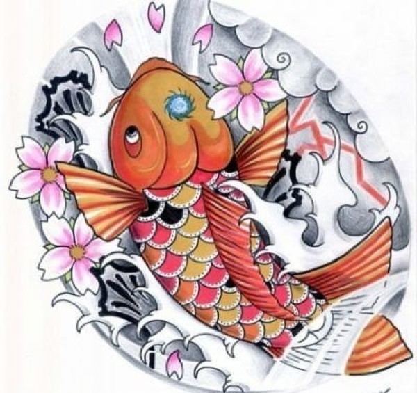 多款漂亮的彩色锦鲤鱼纹身图片手稿