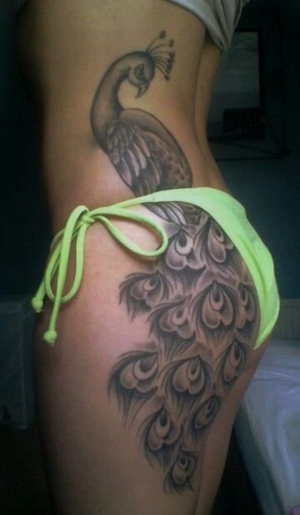 分享一款腰部时尚性感的蝶恋花纹身图案_腰部纹身图案大全_纹身图吧