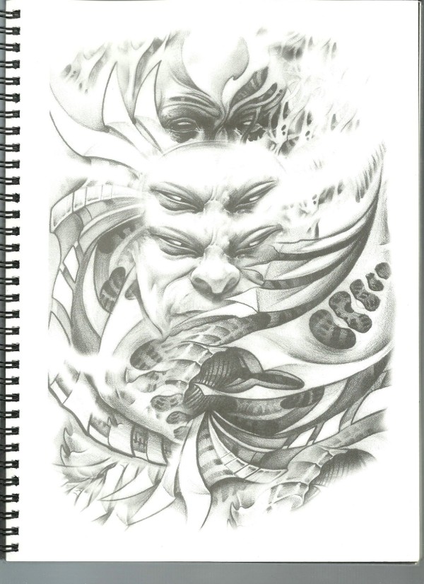 能面万媚纹身手稿_52张日式能剧面具纹身手稿图案素材欣赏