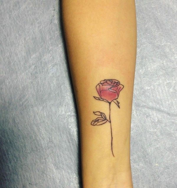 手臂一只鲜艳的玫红花朵纹身刺青