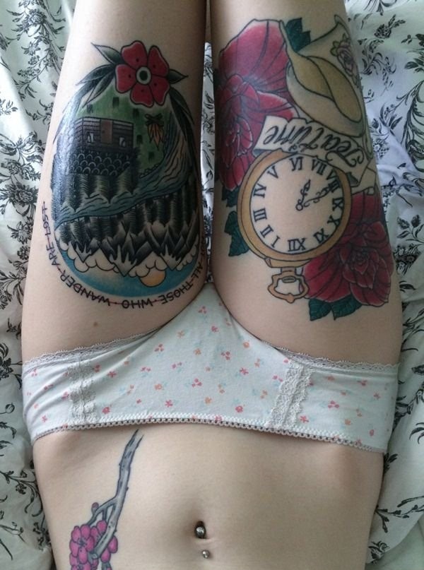 女孩腿部唯美刺青_腿部纹身图案大全_纹身图吧