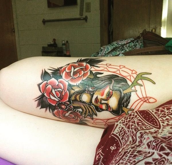 传统花腿纹身--18张传统风格的大花腿纹身图案作品