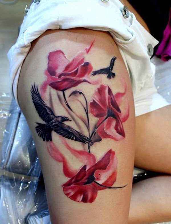 传统花腿纹身--18张传统风格的大花腿纹身图案作品