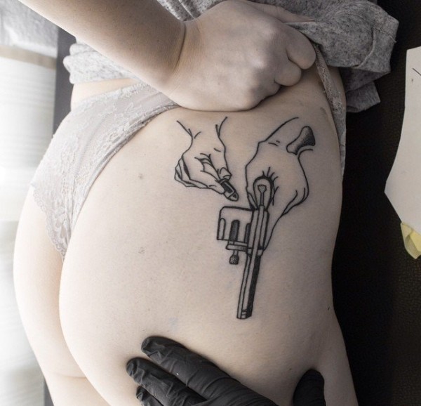 女生后腰纹身黑白灰风格抽象线条纹身图案