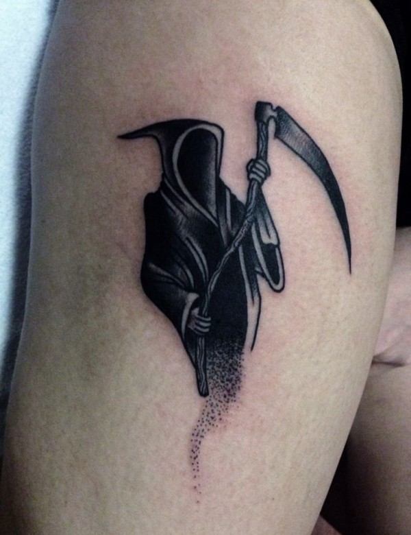 大腿上的黑色死神纹身图片