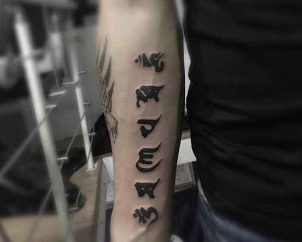手臂时尚大方的梵文纹身刺青