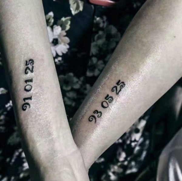 具有纪念价值的手臂数字情侣纹身