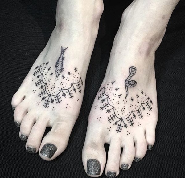 双鱼座纹身手稿_45张十二星座之双鱼手稿纹身图案