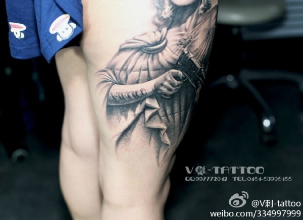 女生人物纹身图案 女生小腿上女生人物纹身图案