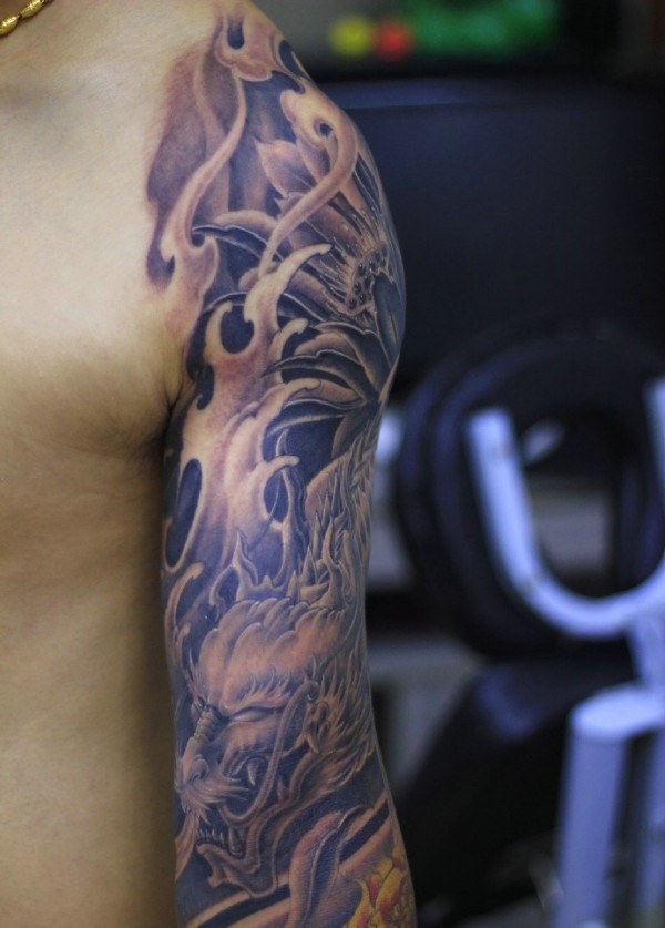 大臂具有男人味的传统邪龙纹身图案