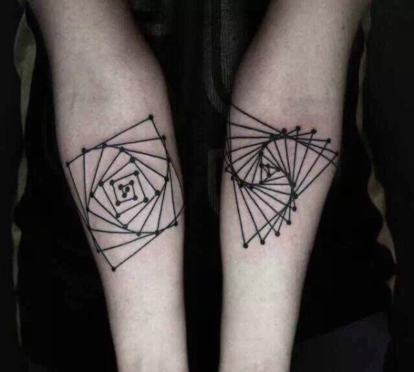 有趣的几何图案拼成的手臂情侣纹身图案