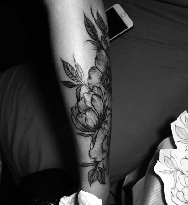 花臂黑白花朵纹身图案清晰唯美