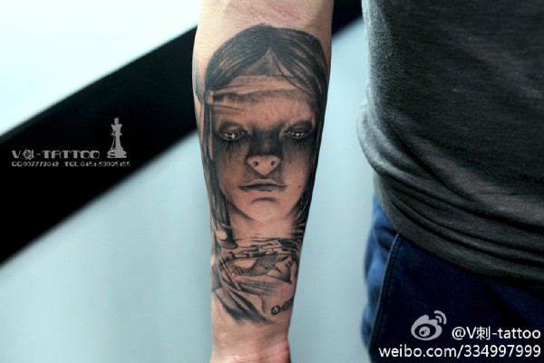 女性肩部肖像刺青_肖像纹身图案大全_纹身图吧