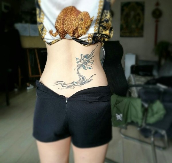 女性腰部莲花花纹刺青_腰部纹身图案大全_纹身图吧