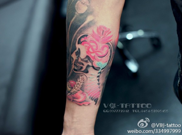 男人大臂黑白彼岸花骷髅_黑白纹身图案大全_纹身图吧