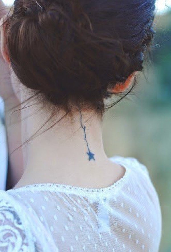 女生后颈部性感又可爱的小清新纹身图案