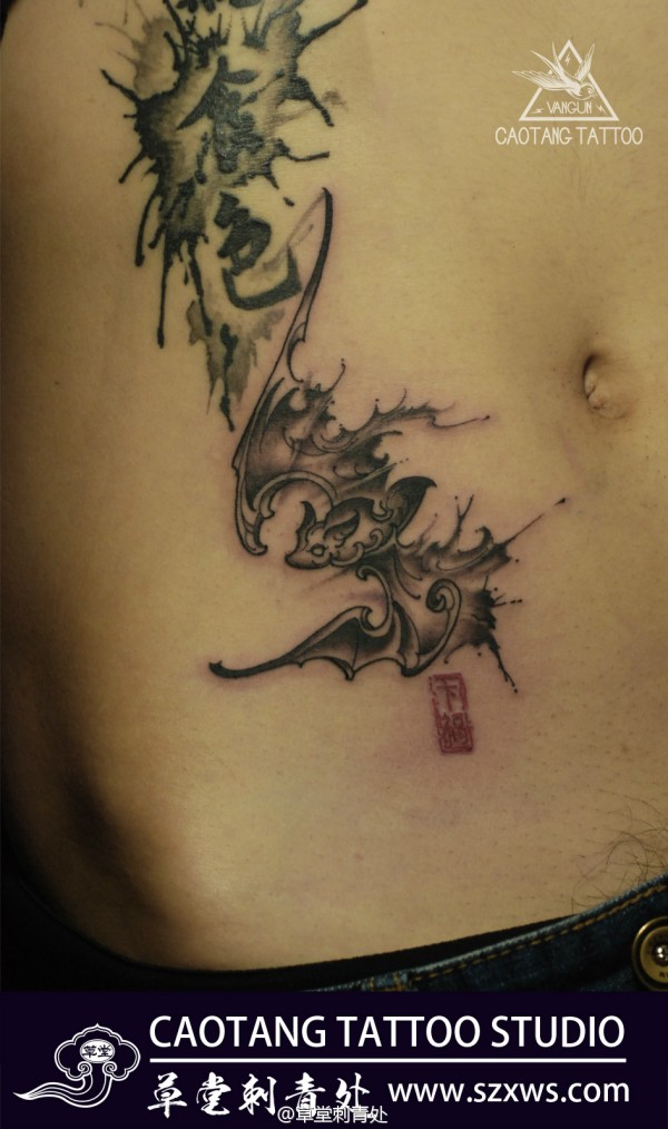 【蝙蝠·刺青】在原本“食色金瓶”泼墨文字下方添加了蝙蝠