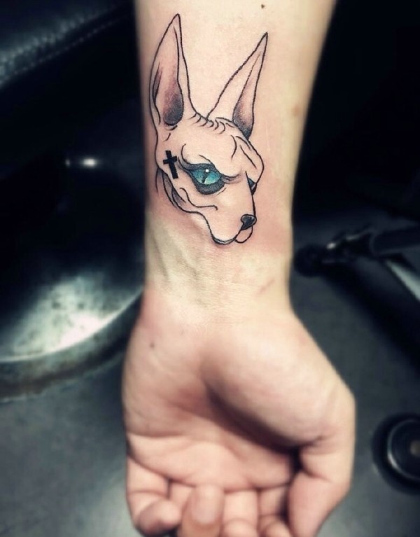 手腕上的个性动物头部纹身图案