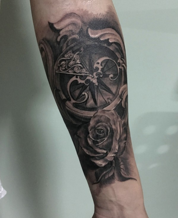 具有男人味的指南针纹身图案