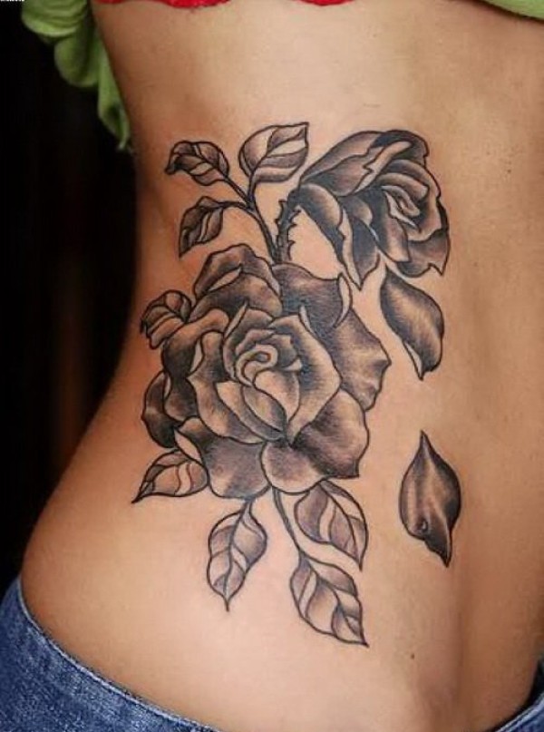 女性侧肋腰部上漂亮性感的玫瑰花纹身图案