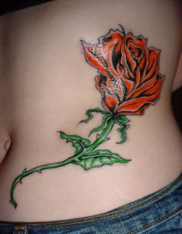 女性侧肋腰部上漂亮性感的玫瑰花纹身图案