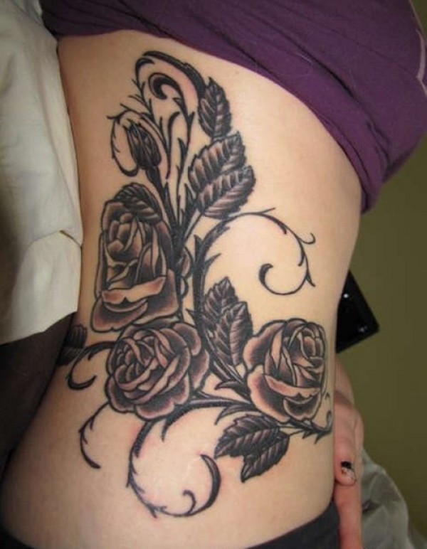 女性侧肋腰部上漂亮性感的玫瑰花纹身图案
