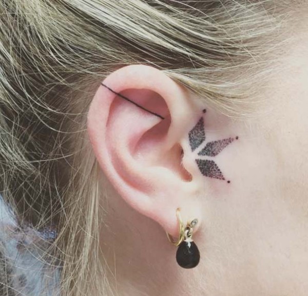 多款女生耳后黑色线条素描文艺小清新小图案纹身图案