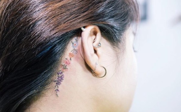 多款女生耳后黑色线条素描文艺小清新小图案纹身图案