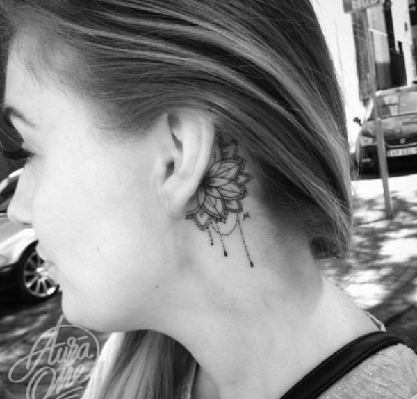 多款女生耳后黑色线条素描文艺小清新小图案纹身图案