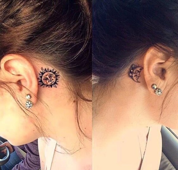 多款女生耳后黑色线条素描文艺小清新小图案纹身图案