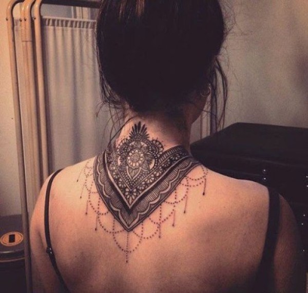 女性后颈部漂亮装饰纹身图案