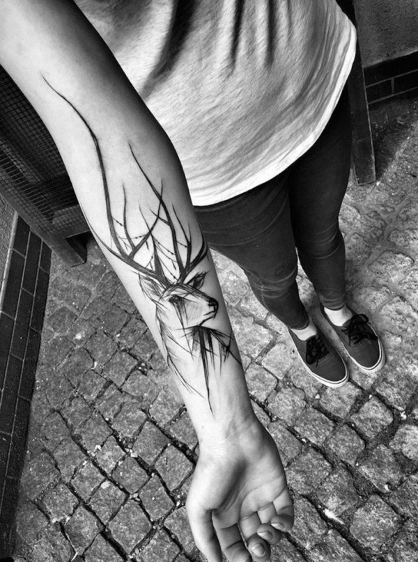 极简线条纹身 多款极简线条纹身素描欧美抽象纹身图片