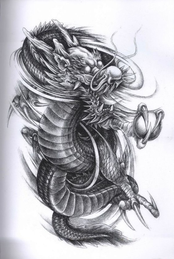 龙纹身手稿_一组老传统黑灰龙手稿纹身图案
