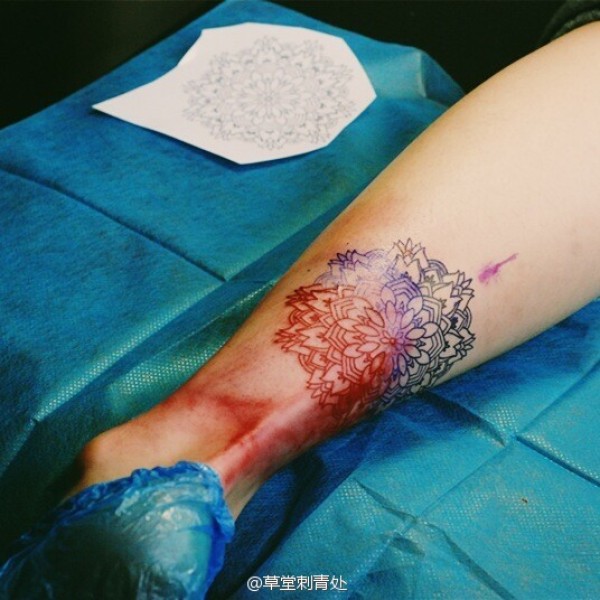 腿部点刺花完成啦,娇艳欲滴的颜色